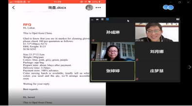 在《跨境电子商务》的线上教学中,采用了zoom软件进行直播教学,课程组田玉丽老师、郭华老师一起参与到课程中来。直播中学生的积极参与和分享,让我找到了还在课堂的感觉,共享屏幕,多人视频,及时交互,既有被动点名的学生参与,也有学生自己主动参与到课堂中来,不再是呆呆地面对着镜头而不知道背后谁还在、谁不懂。