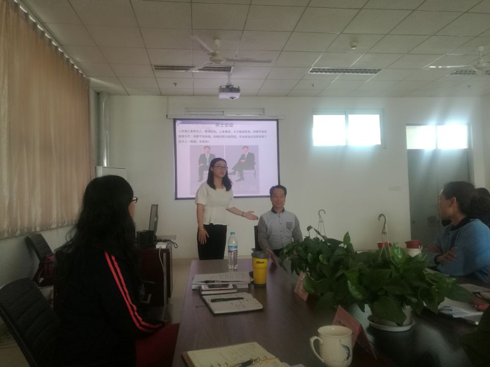 为了进一步加强师德建设,提高广大教师的思想政治素质和师德水平,努力打造一支“有理想信念、有道德情操、有扎实学识、有仁爱之心”、适应教育改革发展需要的高素质教师队伍。我院于2018年9月27日邀请了旅游学院刘莹老师在图书馆B401会议室举行了以“教师无小节,处处是楷模”为主题的“教师礼仪”培训,校工会主席周玲莲应邀参加。经济学院院长沈传河、副院长田玉丽、会计学院副书记赵丽丽及两个学院的全体教师共同参加,会议由经济学院副书记齐振花主持。