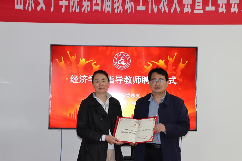 会上,齐振花介绍了学院聘任指导教师的初衷,并宣读了经济学院党政联席会聘马克思主义学院副院长石荣菊教授为经济学院思想政治理论教育指导教师、聘体育部刘芳副教授为经济学院第二课堂指导教师的研究决定。