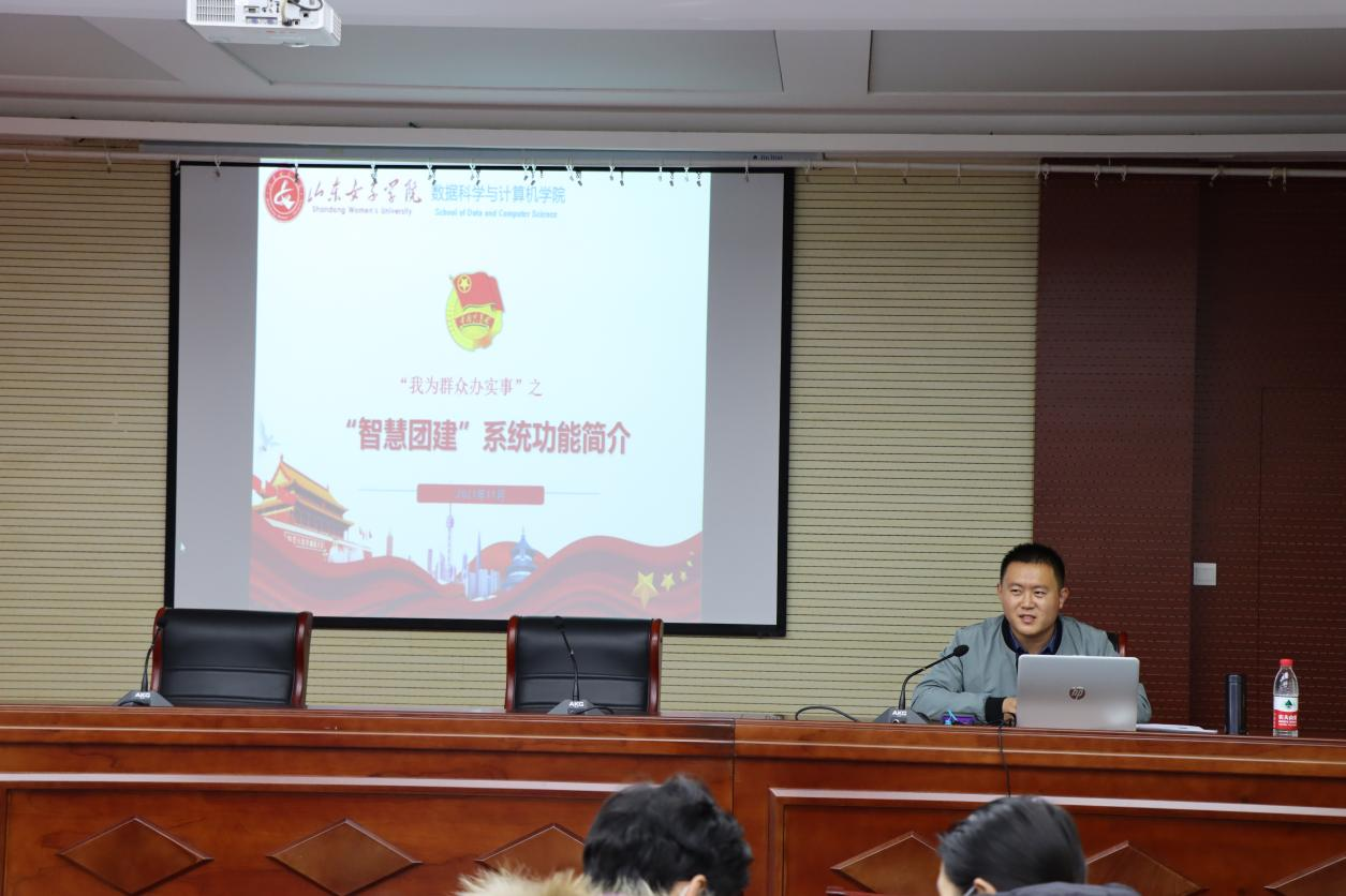培训开始,来自数据科学与计算机学院的郭晓东老师为工作人员介绍了智慧团建系统功能,他从用户类别、常用的管理功能和业务办理等方面由浅入深,全面细致地进行了讲解,让现场的社区工作人员对智慧团建系统有了更加深入的认识。