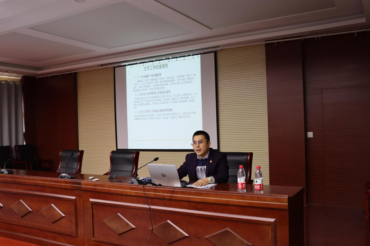 山东女子学院党委、院长办公室的孟涛老师结合自身多年从事文字工作的实践,从工作的职责、常用文稿的格式要求、多种文体的写作特点等方面进行了讲述,分享了自己总结的文字工作经验和技巧,帮助工作人员解答了在公文写作中遇到的难题。