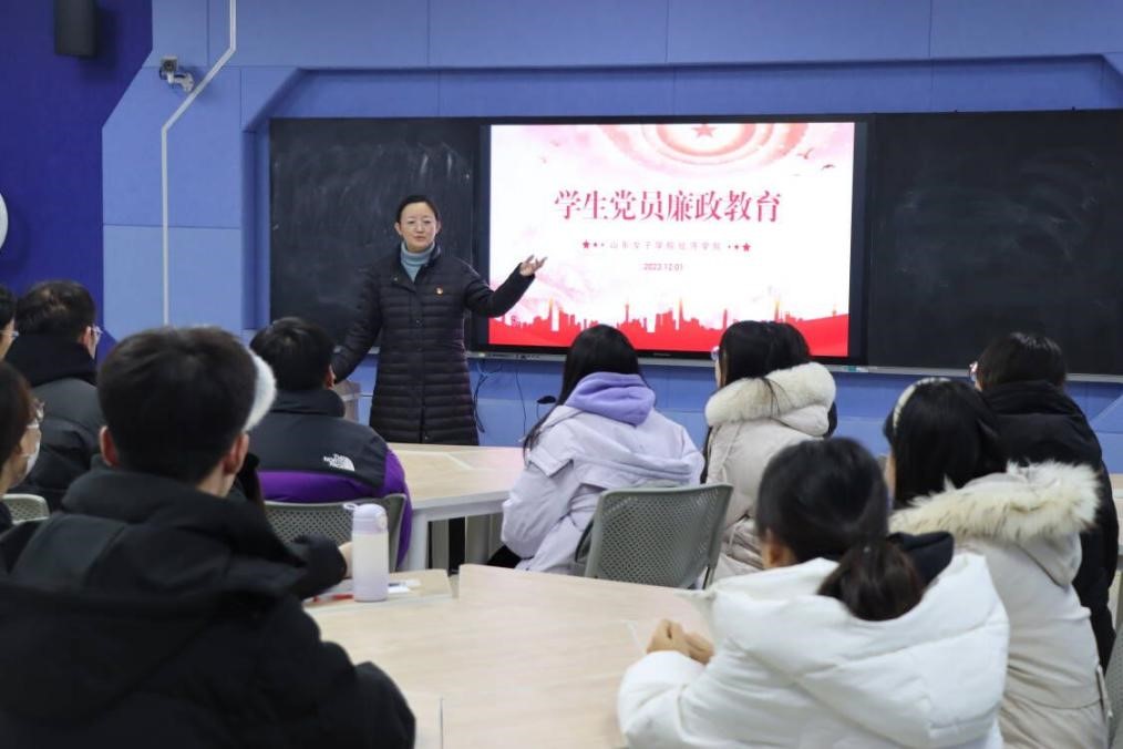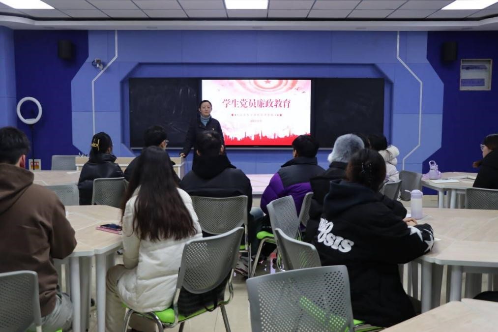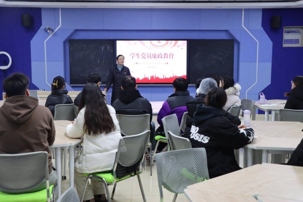 为深入学习贯彻党的二十大精神,扎实推进学生党员廉政教育,提高学生党员廉洁自律意识,2023年12月1日下午,经济学院在求真楼515开展“学生党员廉政教育”,本次党课由党总支副书记赵晓琳主讲,学生党支部全体学生党员参加。