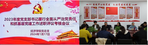 2024年1月17日下午,经济学院党总支在求真楼202会议室召开2023年度党支部书记履行全面从严治党责任和抓基层党建工作述职评议考核会议。学校督导组成员、纪委监察室主任金芳同志莅临指导,学院党总支成员、各党支部书记和党员代表参加了会议。会议由学院党总支书记齐振花主持。