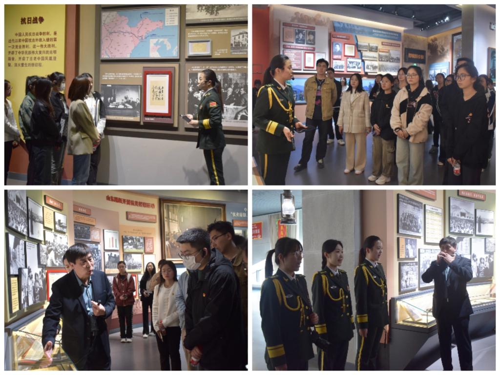 在山东老战士纪念广场,全体党员同志在讲解员的带领下,依次参观了“齐鲁御寇血铸长城”、“向北发展向南防御”、“雄师百万转战全国”、“北上南下开辟新区”等七个展区,同志们通过参观图文、实物、蜡像雕塑、视频动画等多种形式,边学习、边聆听、边领会、边思考,重温了从抗日战争、解放战争到抗美援朝,数以百万计的山东子弟兵为民族解放、国家安宁而血战沙场的英勇事迹,切身感悟了老战士英勇善战、追求民族独立和人民解放的革命精神。随后,同志们来到纪念墙和将军林前,深情凭吊革命先烈英魂,并与山东老战士纪念广场管委会邓海燕主任围绕革命历史资料的征集与管理进行了深刻交流。邓主任为纪念袁文正烈士,亲自吹奏起了这位英雄人物在生前最爱的乐器口琴,讲解员也随之唱起了革命歌曲,大家仿佛看到了袁文正烈士在朝鲜战场上吹奏着《中国人民志愿军战歌》鼓舞士气的场景。一幕幕动人的场景,一段段感人的故事,振奋了大家的精神,也为大家上了一堂生动的党课。