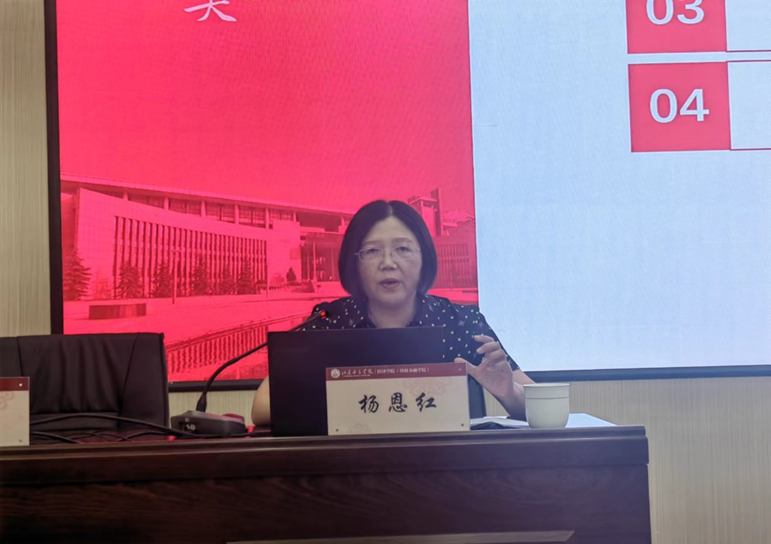 在求真楼报告厅,杨恩红书记从深刻认识党纪学习教育的重要意义、准确把握新修订《条例》的鲜明特点、相关条款解读、学习贯彻《条例》,做遵规守纪的表率四个方面进行了深入浅出的讲解。通过讲解《条例》的修订背景、过程、主要内容以及如何贯彻落实等内容,让全体党员更加精准的把握《条例》的精神实质。同时,针对与党员干部工作生活密切相关的违规收送礼品礼金、以讲课费等名义变相送礼、因私出国境管理、网络平台发布不当言论等条款,以案例剖析的形式进行深入解读,教育广大党员、干部明确行为底线,认识违纪代价,真正从内心重视、警醒、知止。她要求全体党员在党纪学习教育中,不仅要深刻理解《条例》的内容,更要在实际工作、学习中严格执行,确保《条例》规定的各项要求落到实处。