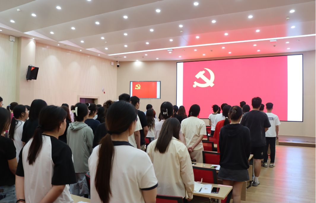 随即,戴晓艺同志带领大家同唱《国际歌》,共同庆祝中国共产党成立103周年。她担任20届毕业生辅导员,四年的时间里对学生严管厚爱,刻刻关心关爱学生,处处做到为人师表。心中虽有不舍,依旧送上了她满含激动之情但不失严厉的殷殷嘱托。道阻且长,行则将至,学院永远是温暖的港湾。她希望党员们以此为契机,继续加强学习,将党纪内化于心,外化于行,时刻以一名优秀党员的标准严格要求自己,为祖国的繁荣、社会的发展贡献青春力量。