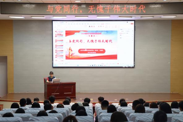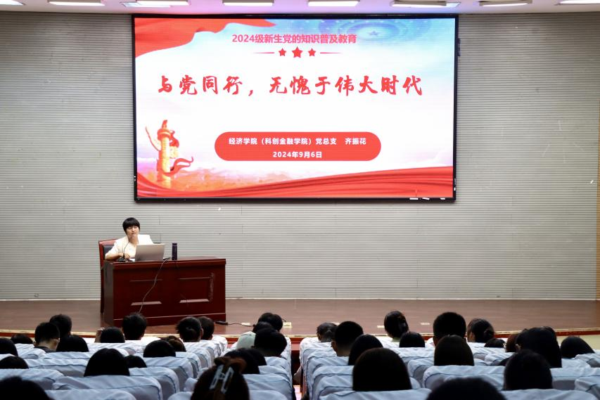 为深入学习贯彻落实习近平新时代中国特色社会主义思想和党的二十大精神,认真抓好新生入党启蒙教育,引导新生听党话跟党走,2024年9月6日,经济学院党总支开展“与党同行,无愧于伟大时代”2024级新生专题系列党课。