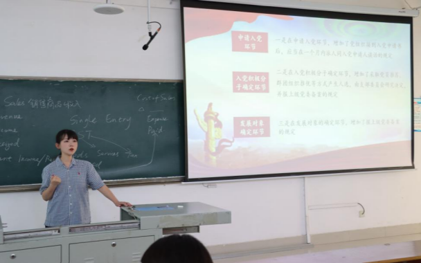 学生第二党支部书记杨辰兴同志针对金融工程专升本新生,以习近平总书记对青年人的殷切嘱托为切入点,围绕“当代青年为什么要入党”“入党需要哪些条件”等方面展开,诠释了中国共产党人的初心和使命,回答了当代大学生积极向党组织靠拢对于国家发展、个人成长的重大意义。他重点讲解了“递交入党申请书的要求和条件”、“入党申请书的撰写”,为新生开展入党申请工作打下良好基础。最后,他鼓励新生们要认真学习党的理论知识、坚定理想信念,增强对中华民族伟大复兴的责任感,以党员的标准严格要求自己,争取早日入党。