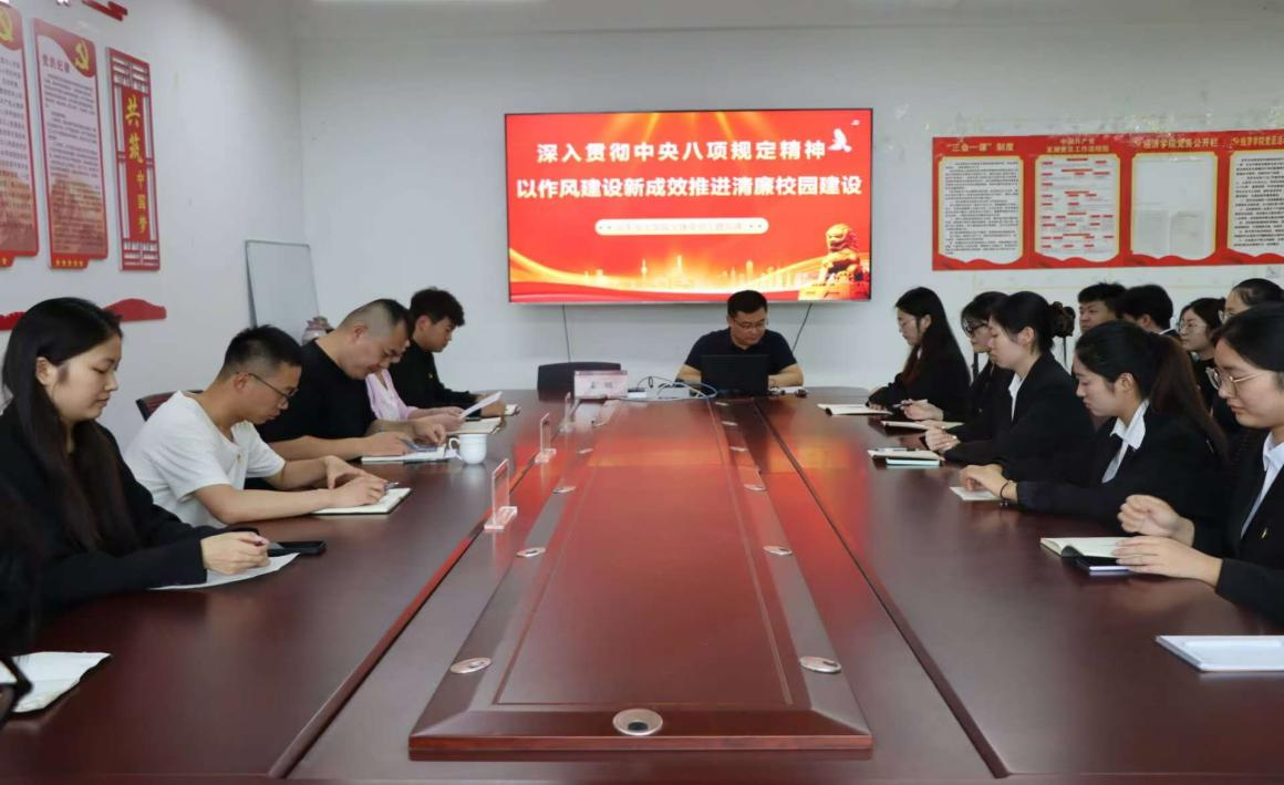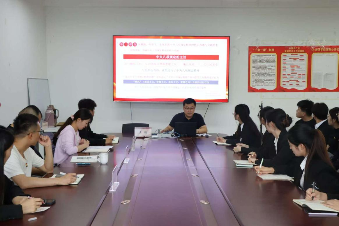 为进一步深入贯彻落实中央八项规定精神,加强学院党风廉政建设,6月19日下午,经济学院党委开展了“深入贯彻中央八项规定精神 以作风建设新成效推进清廉校园建设”专题党课。此次党课由山东女子学院党委委员、组织部部长王鹏主讲,学生第一党支部书记戴晓艺主持,经济学院全体学生党员参加。