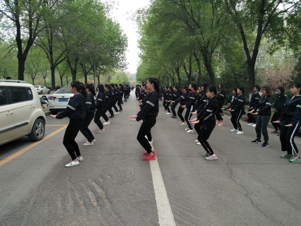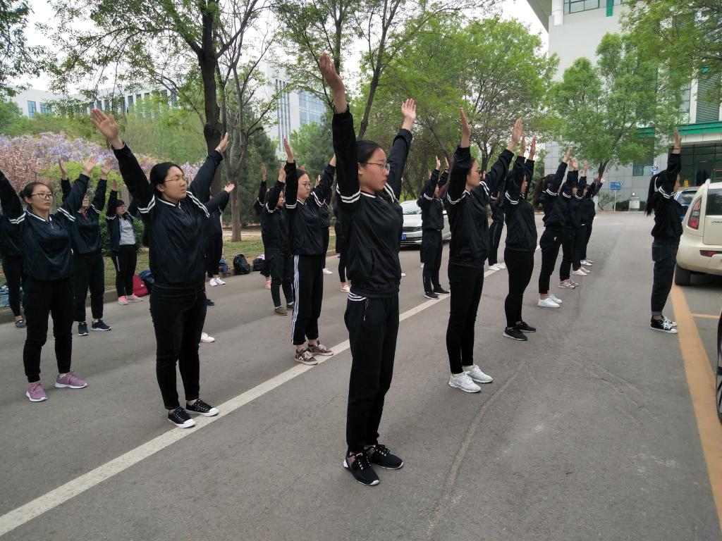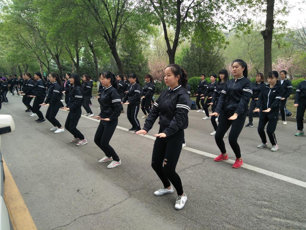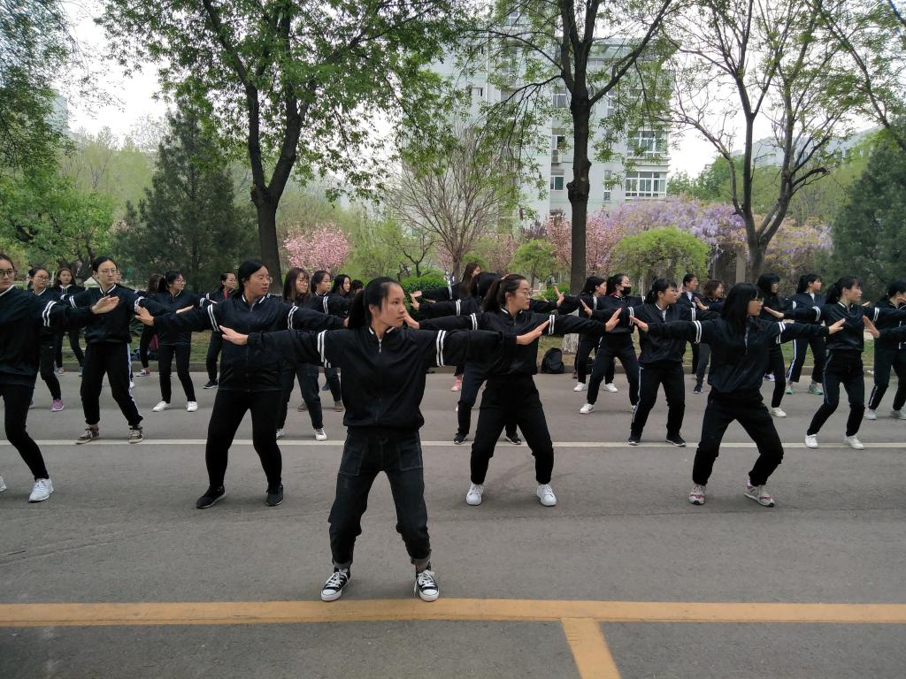 本次训练主要学习八段锦和舞动中国,并于4月9日课间在图书馆和求实楼之间正式开始课间操表演。学校高度重视体育运动,营造校园锻炼氛围,使同学们有强健的体魄。我院开展阳光课间操,让“每天运动一小时,幸福生活一辈子”不再是一句空话,让同学们感受到参与的快乐,每天的阳光课间操表演也成为学校一道亮丽的风景线。