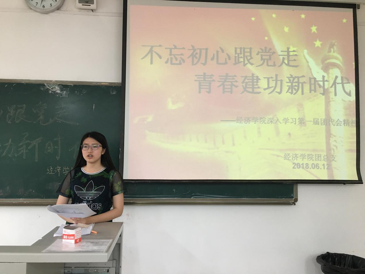 本次研讨会由经济学院学生会主席张淑琪主持,会议伊始,主持人介绍了本次研讨会的背景、意义、开展的目的及会议流程;之后向同学们宣读了郭翠芬书记的发言稿、王鲁书记的报告,作为团代会代表的同学向大家传达了王鲁书记在分团会发言时提到的大会思想,要求大家作为各团支部的先进代表,将此次学习的内容传达给班里更多的同学,做到以点概面,共同进步。最后,主持人宣读致全校团员倡议书,希望同学们根据倡议,严格以共青团员的标准要求自己,把握人生航向,担当新时代新使命,谱写青春华章。