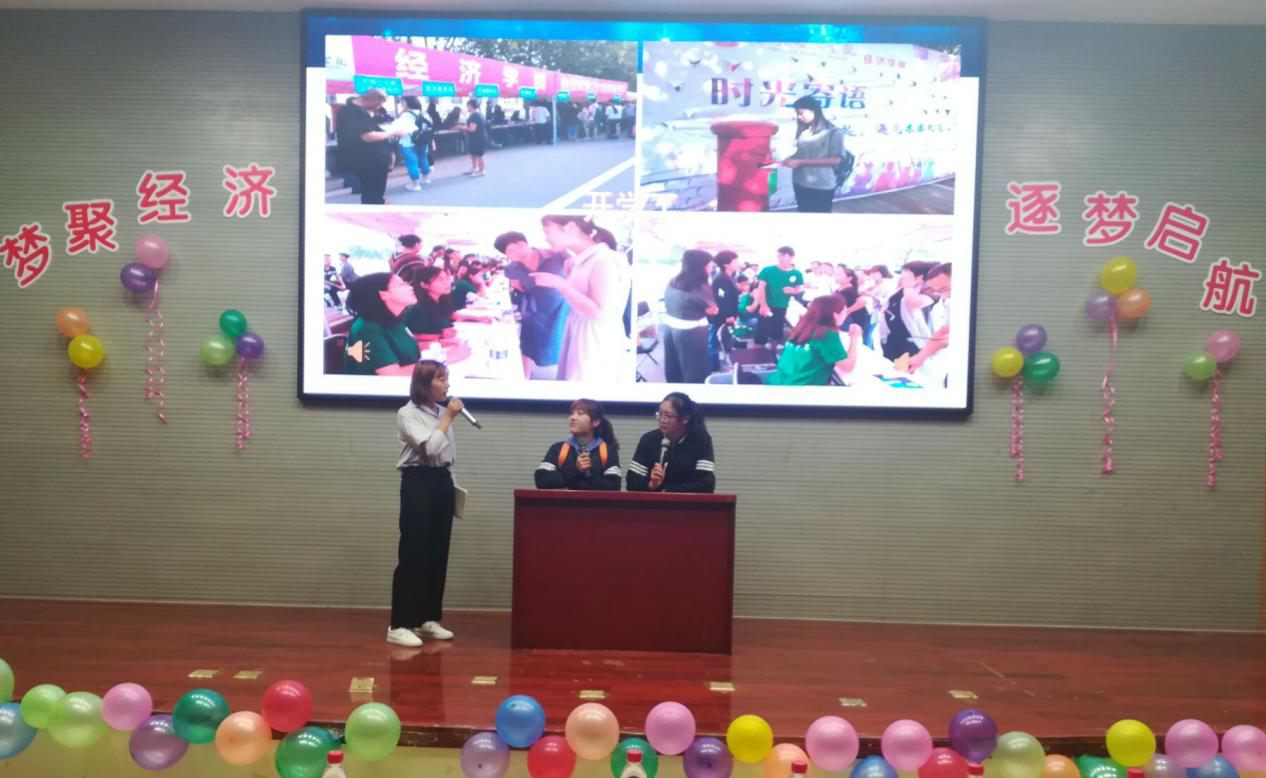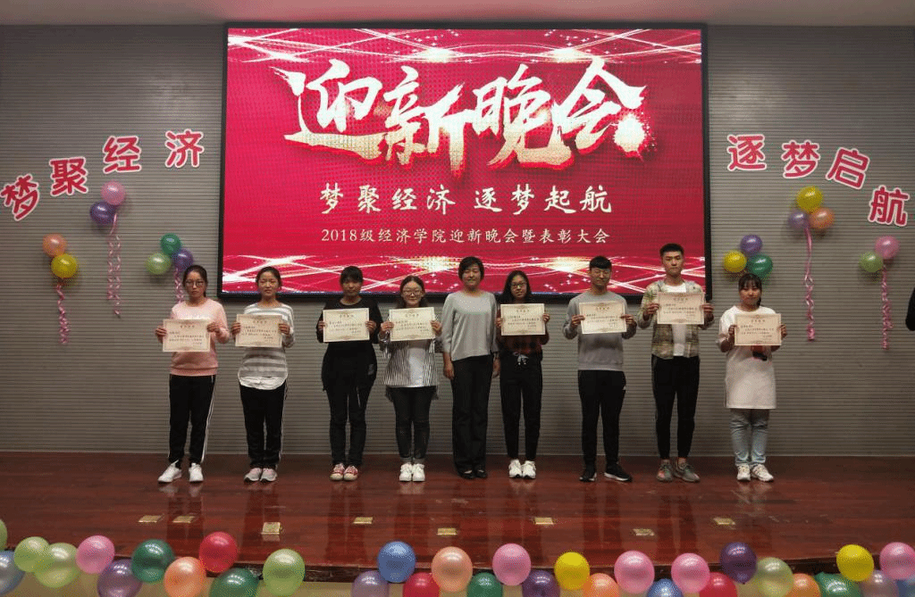 为了展示我院莘莘学子的风采,经济学院于2018年9月27日在图书馆一楼报告厅隆重举行了2018级迎新晚会暨表彰大会。经济学院院长沈传河、党总支副书记齐振花、副院长田玉丽、辅导员、学生会全体成员、部分老生以及2018级全体新生参加了活动。