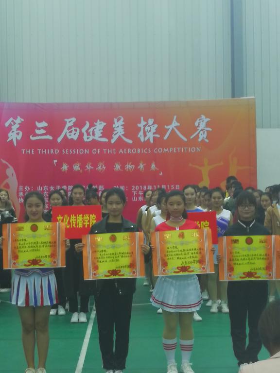 为营造和谐的校园文化氛围,引导学生树立自尊、自爱、自立、自信、自强的积极健康形象,展现当代大学生的蓬勃朝气和与时俱进的精神风貌,彰显青春魅力。2018年11月15日,经济学院健美操代表队积极参加了由山东女子学院体育教学部主办,山东女子学院学生处、校团委和山东女子学院保卫处承办的第三届健美操大赛。