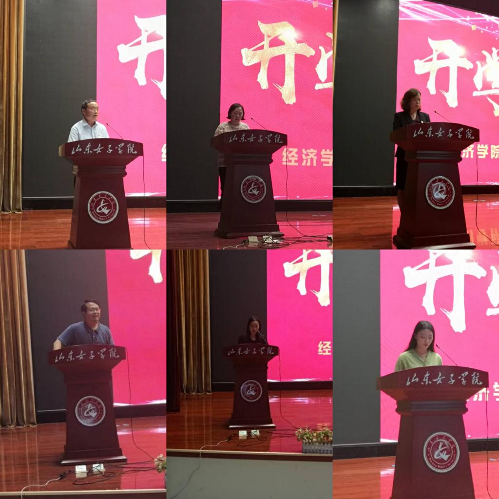 会议伊始,山东女子学院学生工作部(处)王永泉处长对2019级新生的到来表示热烈的祝贺,并以弘扬女院精神为主题向全体新同学提出几点希望。接下来,由经济学院毕业生代表田梦婕、高年级学生代表刘媛媛围绕自己的学习经验与同学们展开分享,并鼓励同学们争做“有思想、有深度、有文化”的新时代大学生。随后,由经济学院教师代表张翠芬、19级辅导员牛秀芬老师分别发表讲话,两位老师的谆谆教诲,代表了我院全体教师的祝福与希望。最后,院长沈传河做重要讲话。他向同学们提出殷切希望,希望同学们用理论武装自己的头脑,用社会实践丰富自己的内涵,用积极的心态迎接挑战,开创经济学院美好的未来!