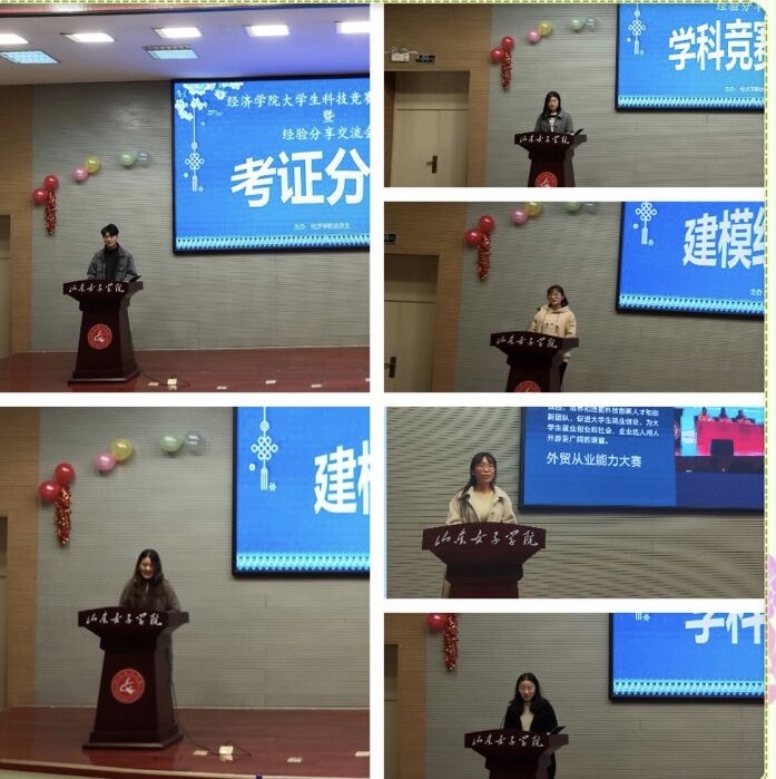 队协作的精神。在经验分享环节,首先由数学建模竞赛和学科竞赛获奖代表分别做经验分享,他们脸上洋溢着自豪,挺直的脊梁彰显出力量,散发出女院人的气质。最后,优秀学生代表单庆海做考证分享,他多次强调,努力决定实力,态度决定高度。