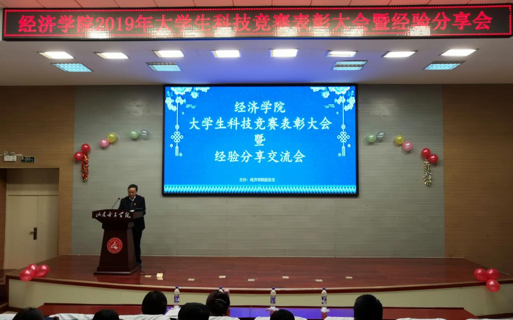 为提高同学们对大学生科技竞赛的认识,全面深入了解所学专业,储备学科知识,培养竞赛素质与能力,2019年11月7日下午,经济学院在图书馆C座一楼报告厅隆重举办大学生科技竞赛表彰大会暨分享会,经济学院党总支书记张农、院长兼党总支副书记沈传河和党总支副书记齐振花,2018级获奖同学及2019级全体同学共同参加。