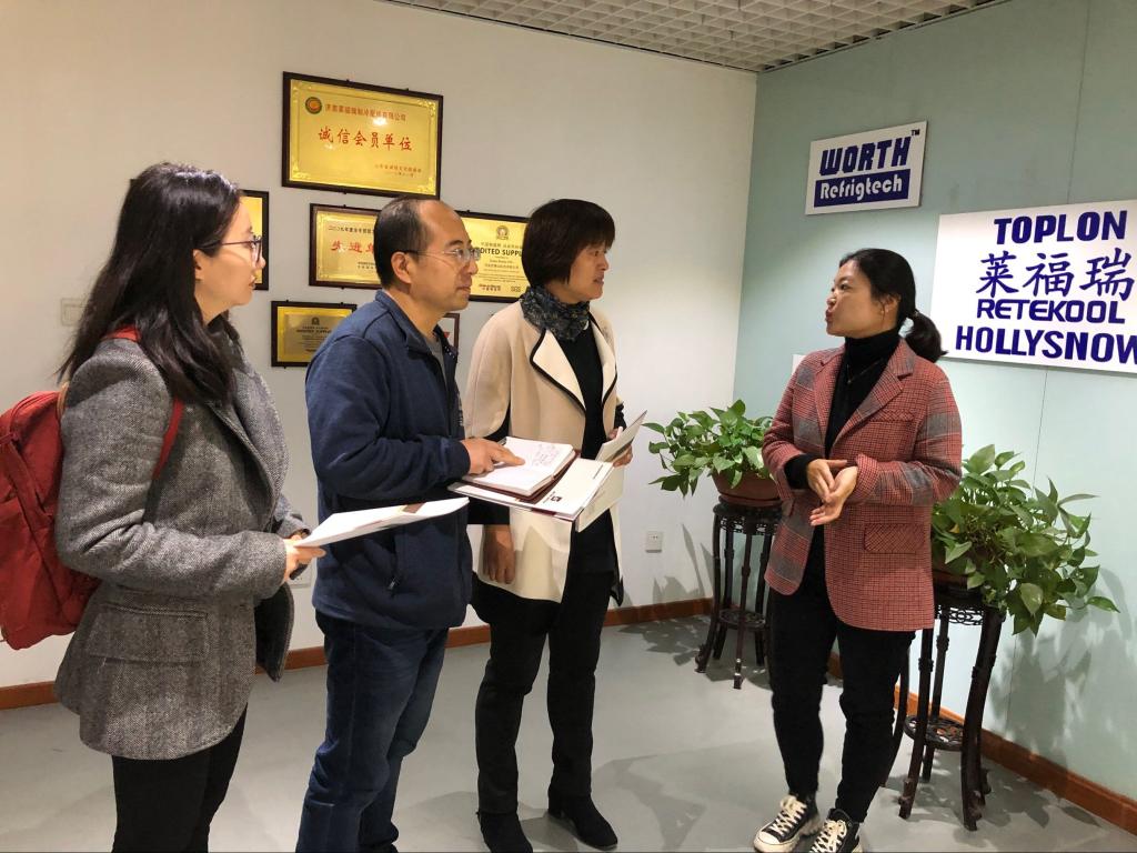 在园区服务中心相关人员的带领下,我院一行四人了解了园区整体的运营情况。先后走访了园区外贸企业山东鲟鱼世纪国际贸易有限公司、山东同程尚品文化传媒有限公司、山东希诺金属材料有限公司、济南莱福瑞制冷配件有限公司。随后,参观了众创空间,了解了园区为协助大学生创业的各项扶持政策和相关资质认定等。