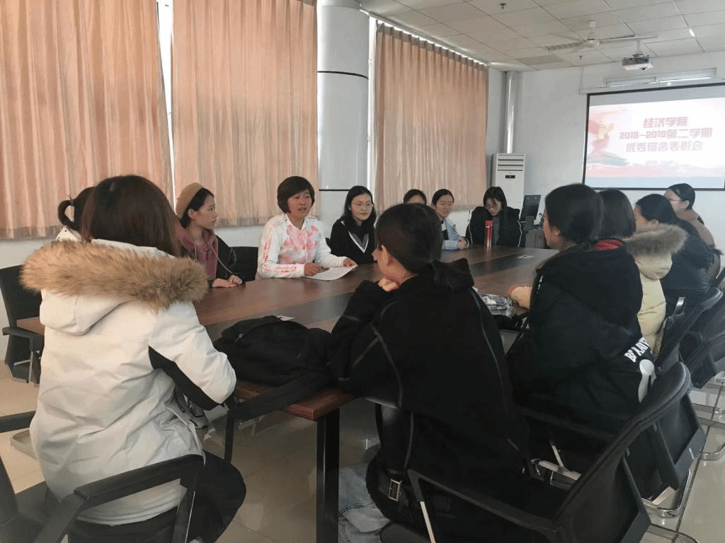 为进一步推动我院宿舍文明建设,营造温馨和谐的生活环境,经济学院团总支于12月4日在图书馆B401会议室召开了2018-2019第二学期优秀宿舍表彰会,经济学院党总支副书记齐振花,19级辅导员和部分学生参加了此次会议。