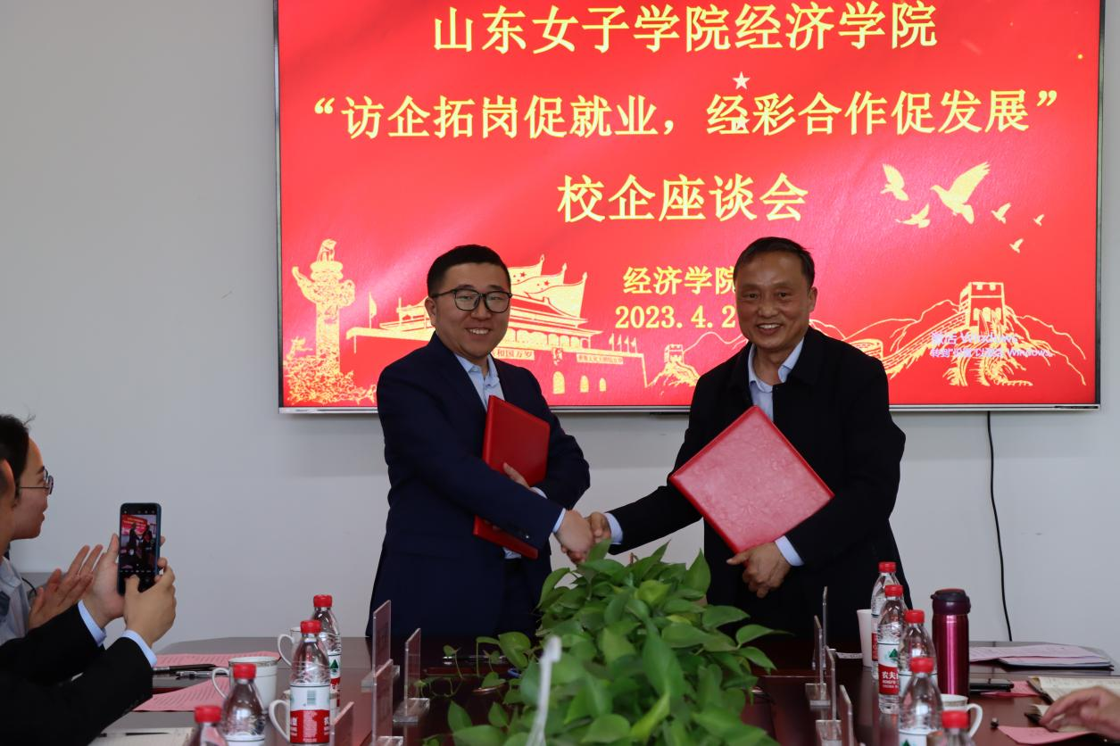 此次座谈会,经济学院与济南农商银行、戈尔特西斯科技有限公司顺利签署实习就业基地协议书、校外实践基地协议书,并举行授牌仪式,初步达成校企合作意向,为后续进一步拓宽就业合作渠道,构建毕业生就业供需对接的长效机制建立良好开端。