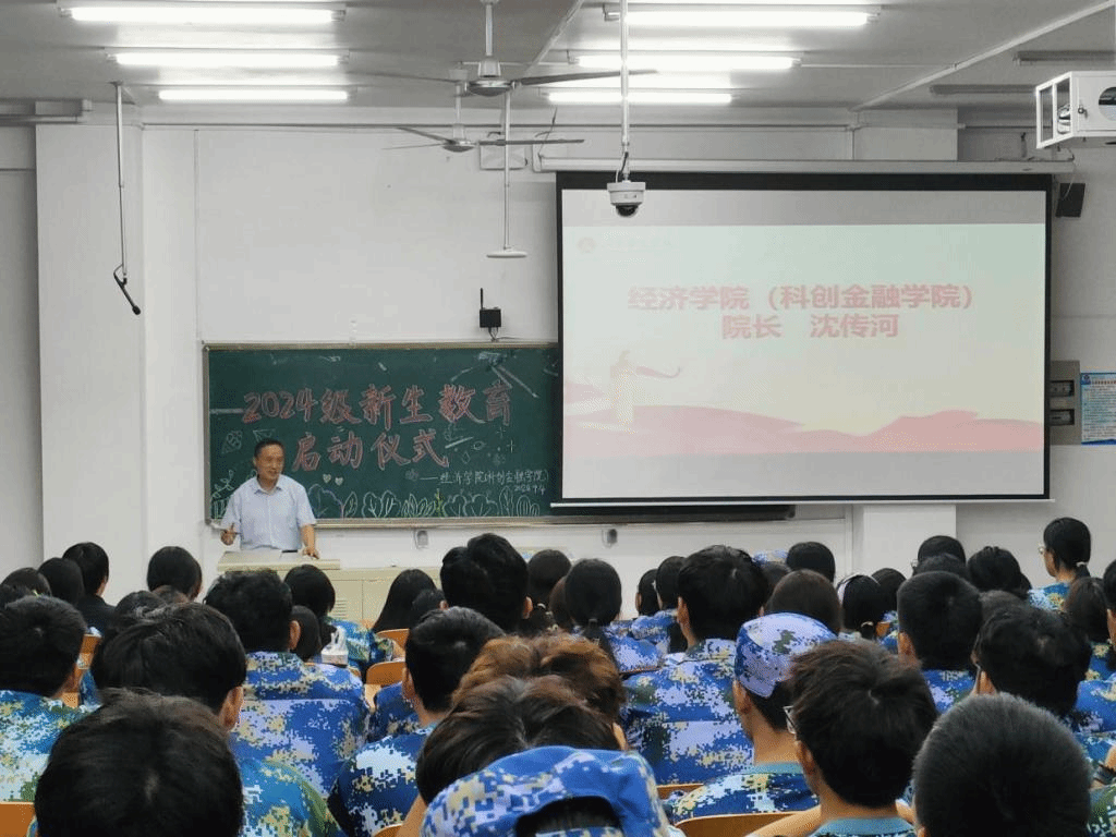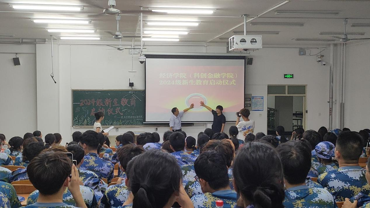 2024年9月4日晚,经济学院在博文楼408举行了2024级新生教育启动仪式。本次会议由新生辅导员张倩倩主持,党总支书记齐振花、院长沈传河、党总支副书记赵晓琳出席会议,学院2024级新生参加会议。
