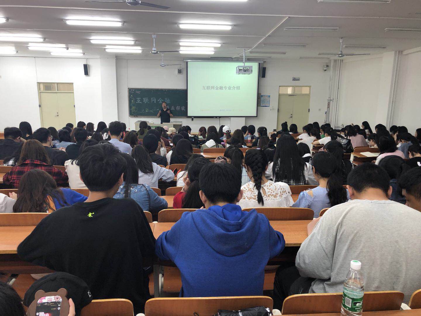 2018年4月19日下午四点,经济学院于博文楼208教室成功举行“行业专家进校园”活动。活动中,学院邀请北京慧科教育科技集团有限公司研发经理韩冰老师为经济学院金融工程专业师生举办以“互联网金融行业最新发展趋势及人才需求状况”为题的讲座。