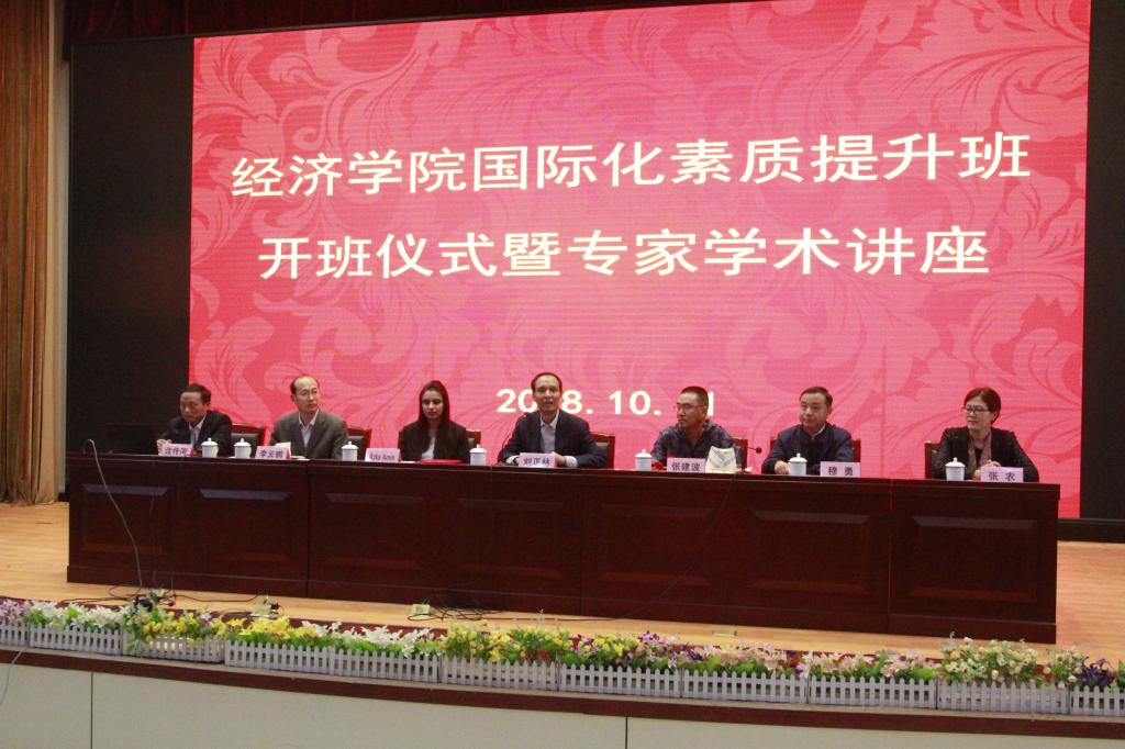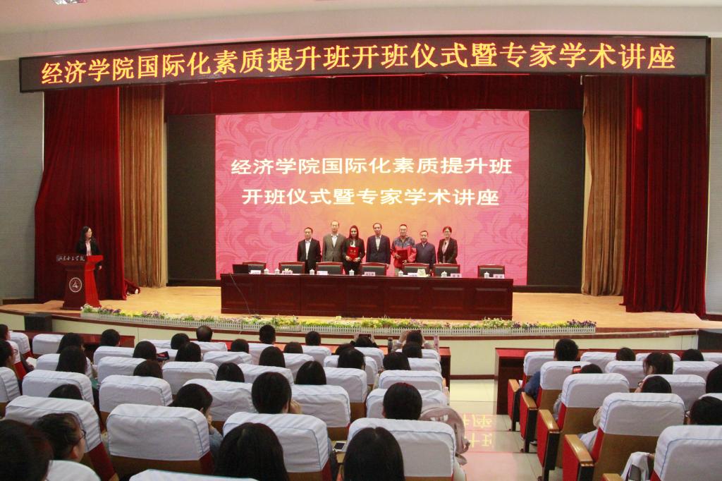 经济学院副院长田玉丽主持开班仪式,经济学院院长沈传河致欢迎词,对客座外籍教师表示热烈欢迎,对学校领导和相关部门大力扶持表示感谢,并对参加首届国际化素质提升班的教师和同学们提出殷切期盼和要求。