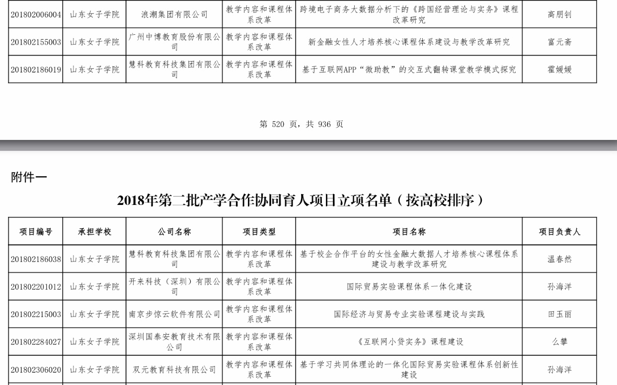 为贯彻落实《国务院办公厅关于深化高等学校创新创业教育改革的实施意见》(国办发〔2015〕36号)和《国务院办公厅关于深化产教融合的若干意见》(国办发〔2017〕95号)精神,深化产教融合、校企合作,教育部高等教育司组织有关企业支持高校共同开展产学合作协同育人项目。根据《教育部高等教育司关于公布有关企业支持的产学合作协同育人项目申报指南(2018年第二批)的函》(教高司函〔2018〕59号)要求,我院积极组织师生向企业提交项目申请,经有关企业对申报项目进行了遴选并经教育部高教司批准,我院高朋钊、富元斋、霍媛媛、温春然、孙海洋、田玉丽、幺攀等老师主持的8个项目入选: