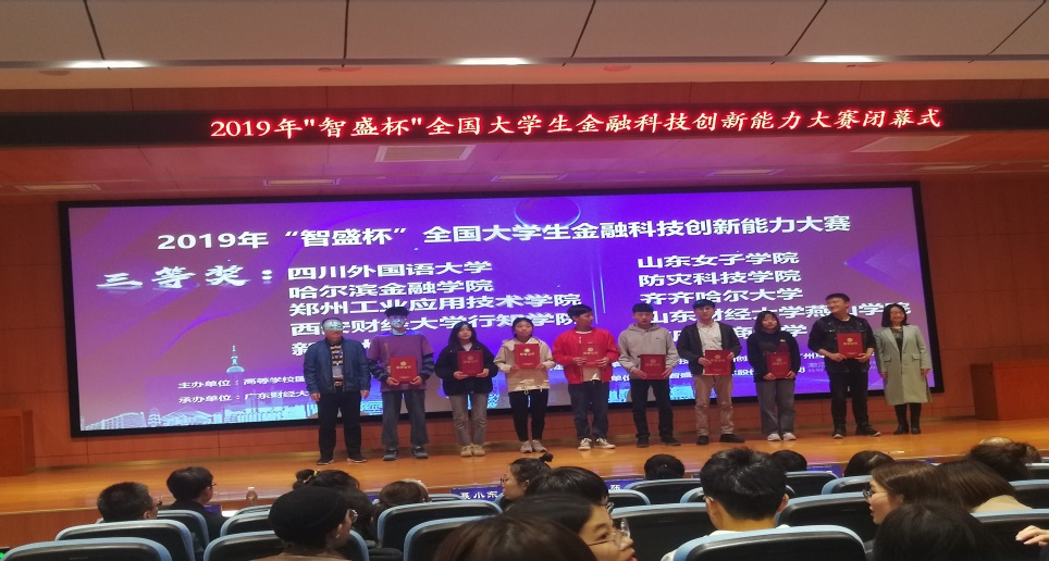 2019年“智盛杯”全国大学生金融科技创新能力大赛于12月7日至8日在广东财经大学举办,我院金融工程专业参赛队在本次大赛中荣获国赛三等奖。