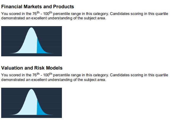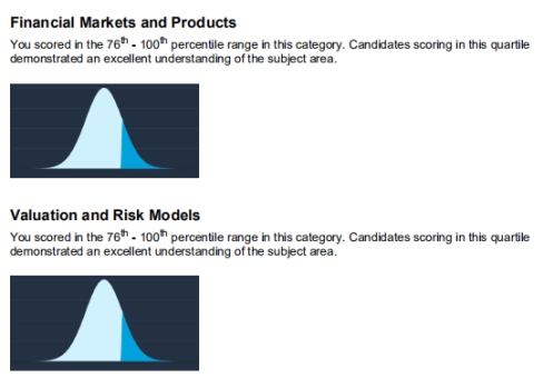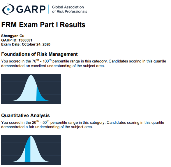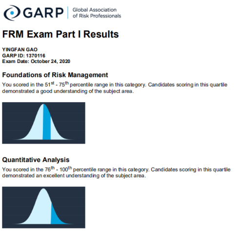FRM一级考试涵盖4个部分,每个部分分别计算成绩,获得1st意味着这一部分的答题正确率在全球考生中名列前25%。