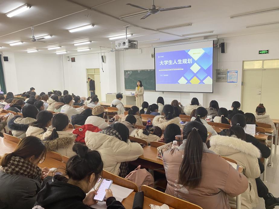 在讲座中,张国珩老师针对女院经济学院金融工程专业的学生从在校生活、升学深造、职场规划等几个方面进行分析讲解,张老师幽默风趣的讲解风格,吸引了同学们的注意力,讲座过程中张老师以提问的形式,和同学们进行了沟通和交流,了解了学生对今后就业的想法,引导学生以就业为导向,树立正确的学习目标。
