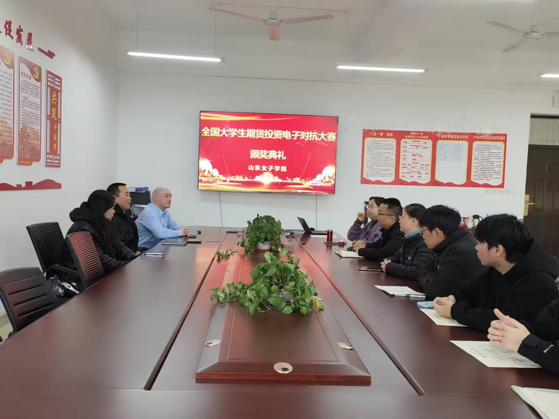 颁奖典礼上,作为本次比赛的承办方之一,永安期货山东分公司副经理王昊辰介绍了公司的基本情况、本届大赛举办的重要意义以及期货行业的未来发展方向。他与获奖学生热情交流,并表示希望今后有更多的学生积极参赛,把所学专业理论知识应用于实际,进而促进自己的专业化成长。赵晓琳和崔俊富对同学们提出,要把平时课堂所学与行业的实际业务有效结合起来,学研结合、学以致用,为未来的职业生涯做好准备。会后,双方就人才培养进行了深入座谈,达成了一系列后续合作意向,推动产学研结合,增强学生的实践能力和职业竞争力,并为学生提供更多实习机会和就业机会。