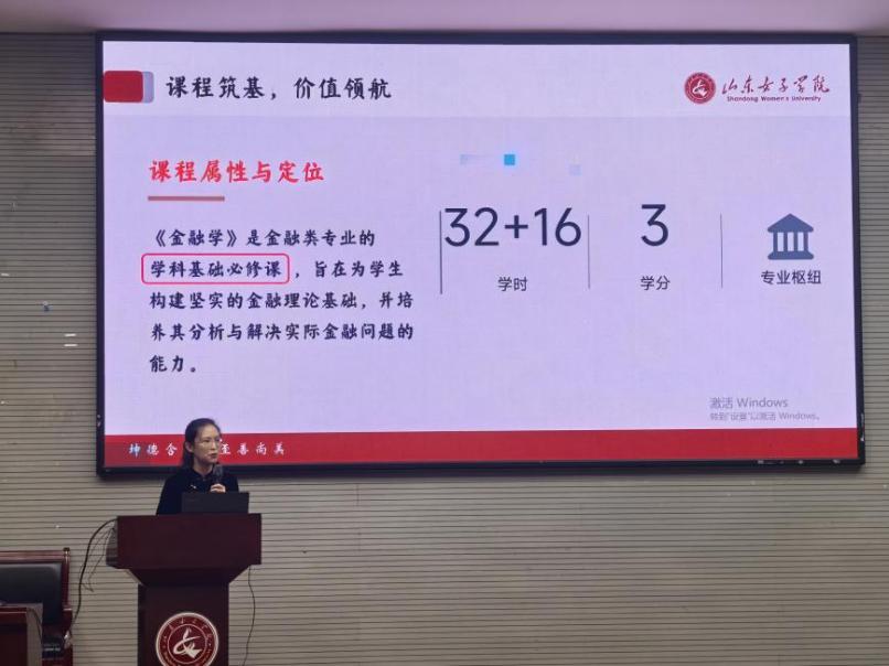 首先,何艺丛老师以《三维聚力,育见未来——“金融学”教学创新范式构建与育人实践》为题,系统介绍了课程在“内容重构、路径设计、模式创新”三个维度上的融合创新。课程以“思政融魂、学术融智、行业融通”的“三融立新”重构教学内容,通过“低阶—中阶—高阶”三阶递进路径设计,以及“情境化、多元化、过程化”的“三化促教”模式,有效破解了传统教学中存在的“教学两难、学用脱节、参与缺失”等困境。课程还依托四大动态资源库和校内外实践基地,构建了“知识—能力—素质—价值”四位一体的育人体系,学生在全国学科竞赛、创新创业项目等方面成果丰硕,课程评价持续位居全校前列。