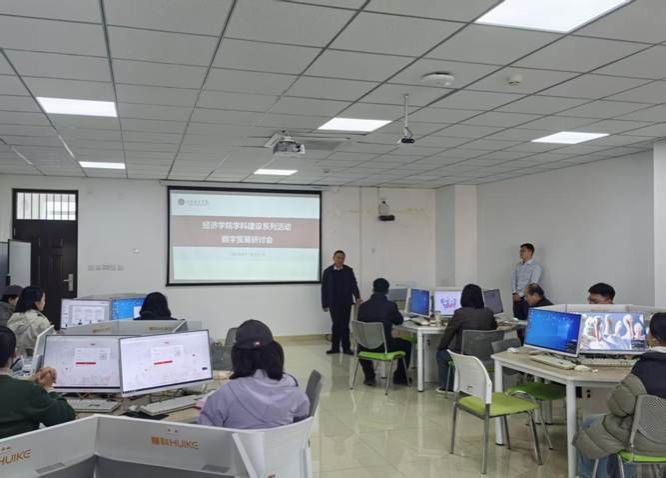 为主动应对数字经济时代浪潮,深化产教融合,推动学科建设与人才培养模式创新,2025年11月21日经济学院在求真楼501举办了“经济学院学科建设系列活动----数字贸易研讨会”。本次会议特邀用友新道科技股份有限公司的专家团队来校进行深度交流与专题培训。经济学院院长沈传河、副院长崔俊富、国际经济与贸易教研室部分教师及学生代表共同参加了此次活动。