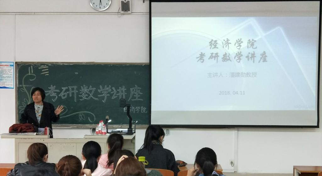 为激发同学们对考研数学的学习兴趣,明确数学考研的方向,经济学院于4月11日下午在博文楼204举行了考研数学讲座。学校数据科学与计算机学院院长潘建勋教授受邀出席讲座并做精彩讲座,经济学院党总支副书记齐振花主持会议,全体2015级和2016级在校生共同参加了会议。