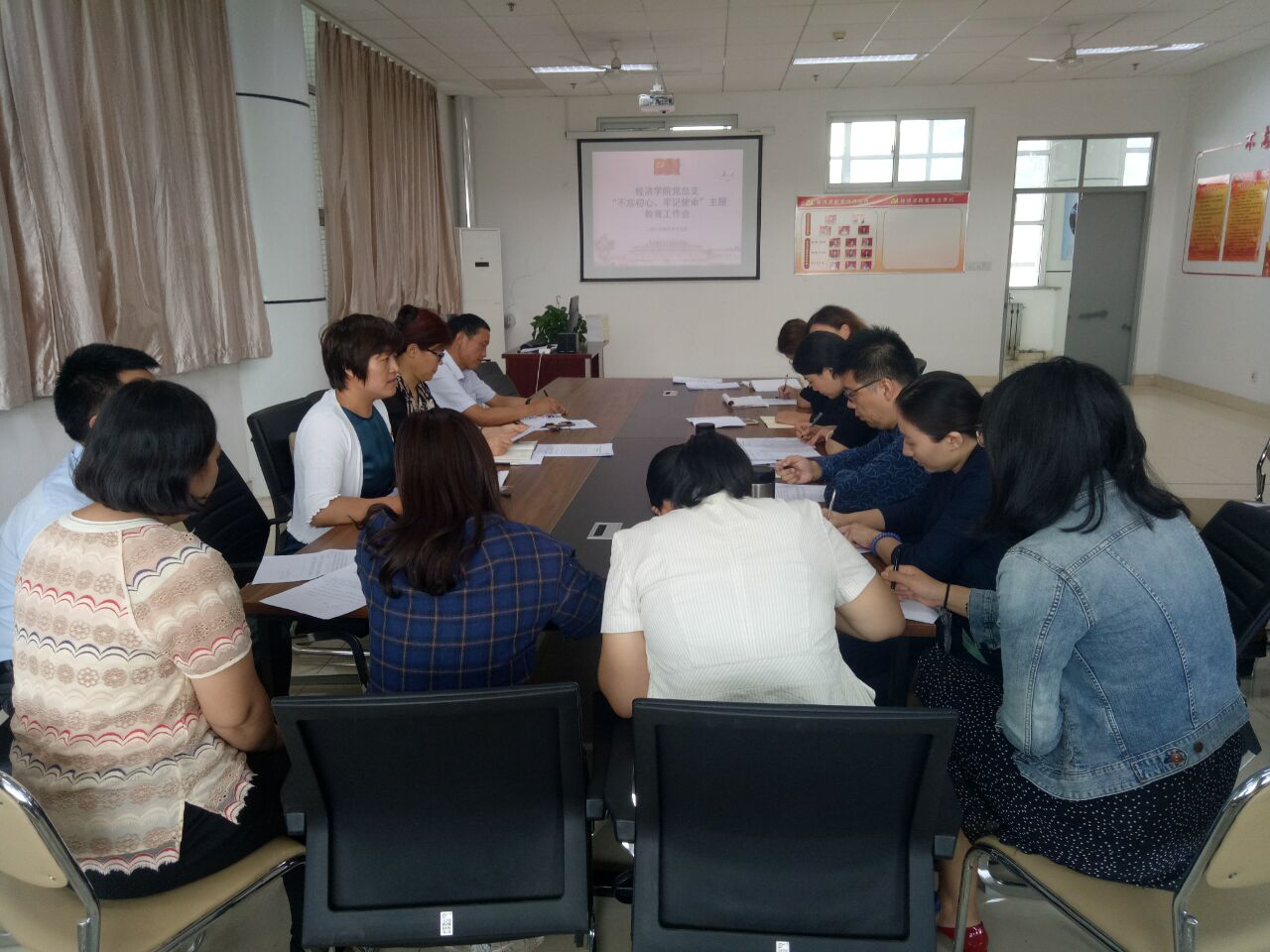 经济学院党总支于2019年9月19日下午,在图书馆B座401会议室召开“不忘初心,牢记使命”主题教育工作部署会,学院党总支书记张农、院长兼党总支副书记沈传河及党总支全体党员参加会议,会议由党总支副书记齐振花主持。