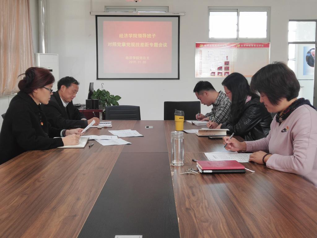为确保“不忘初心,牢记使命”主题教育检视问题不断走向深入,切实抓好整改落实,根据主题教育总体安排,经济学院领导班子于11月5日下午,在图书馆B座401召开对照党章党规找差距专题会议。经济学院领导班子全体成员参加,党总支书记张农主持了专题会。