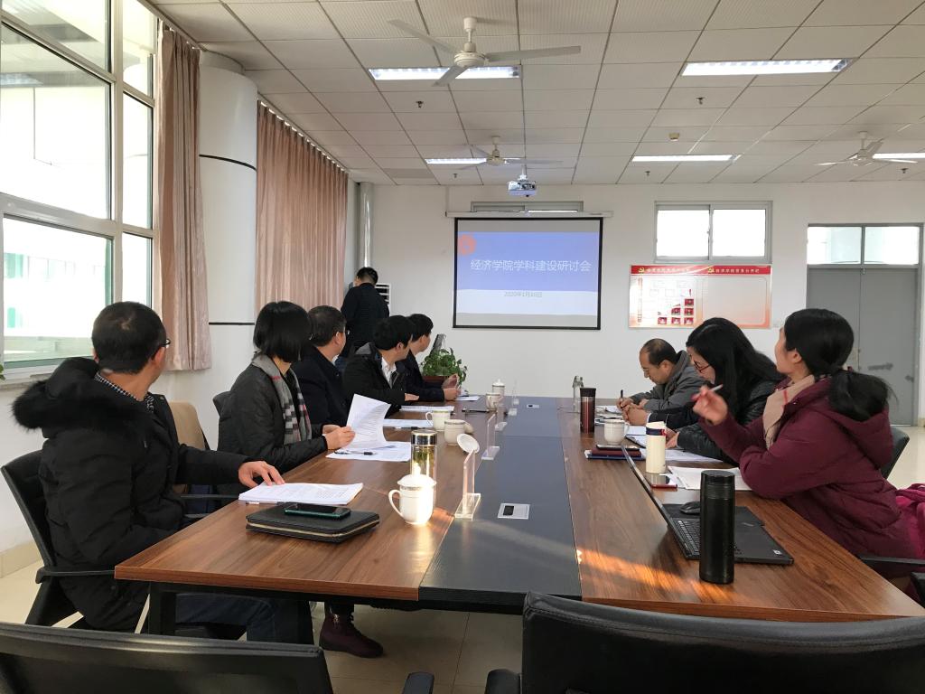 2020年1月10日,经济学院召开 “经济学学科发展与专业建设研讨会”,山东财经大学国际贸易学院院长王培志教授、山东财经大学金融学院院长彭红枫教授、山东师范大学经济学院院长乔翠霞教授、山东管理学院经贸学院院长李全海教授到会指导工作。学校科研处长、学科办主任李缨、教务处副处长李宏出席会议,经济学院院长沈传河、副院长田玉丽以及应用经济重点学科带头人、各方向学术带头人、教研室主任、部分教师参加了研讨会。