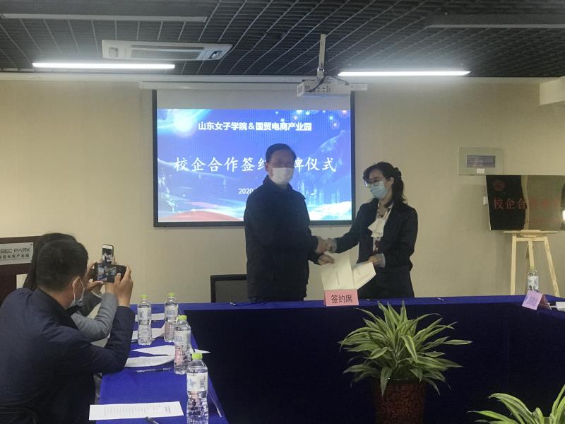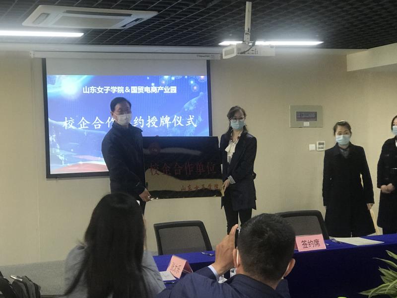 为进一步深化产教融合,加快促进国贸专业实践教学的创新,2020年4月21日下午,山东女子学院与济南国贸电商产业园校企合作签约授牌仪式在国贸电商产业园区会议室举行。山东女子学院副校长贺兴利、科技产业管理处副处长杨洋、经济学院院长沈传河、国际经济与贸易教研室副主任郭华和专业教师张太乐,与济南国贸电商产业园总经理陈蕾及山东书梦贸易有限公司总经理张鑫、山东拓扑泰克进出口有限公司总经理毛长明、阿里巴巴国际业务发展部资深客户经理张玉凤、山东联合竟成国际货运代理有限公司总经理李懂善等优秀企业家代表参加签约授牌仪式。