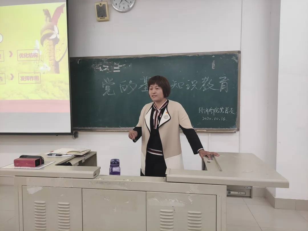 为深入贯彻落实全国和全省高校思想政治工作会议精神,引导广大青年学生坚定共产主义远大理想,10月16日晚,在博文楼310,经济学院党总支书记齐振花为2020级新生讲授党的基本理论知识,2020级新生以及各班助理班主任积极参加。