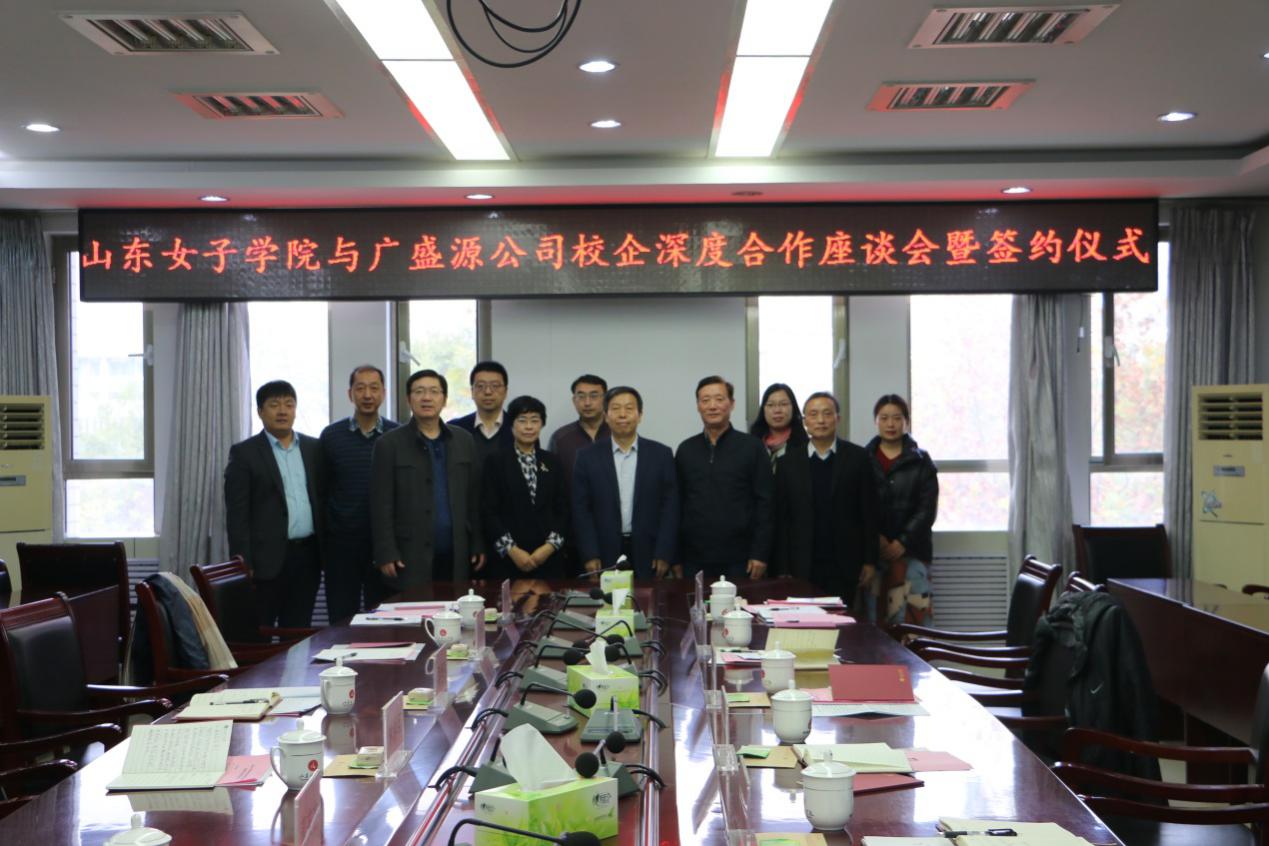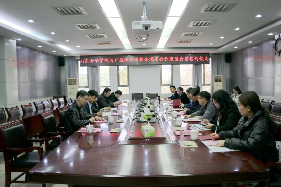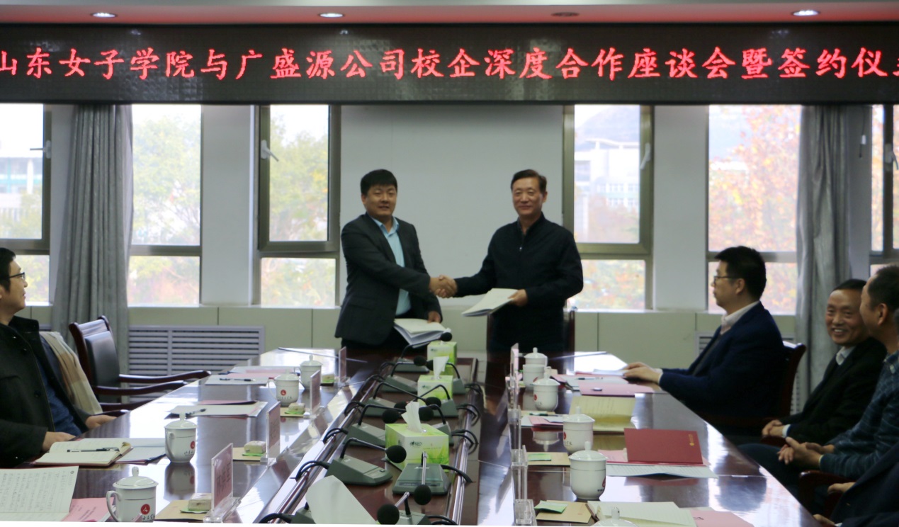 2020年11月20日上午,学校与济南广盛源生物科技有限公司《校企深度合作座谈会暨签约仪式》在学校第三会议室顺利召开。长清区委常委、统战部部长梁艳玲、长清区工业和信息化局副局长闫新礼、广盛源生物科技有限公司总经理林洪军、长清区工业和信息化局服务贸易科科长董来杰和学校党委副书记、校长盛国军、党委委员、副校长贺兴利以及学校科技产业管理处处长刘明、教务处副处长吕慎敏、经济学院院长兼党总支副书记沈传河、副院长田玉丽、副院长冯亮、国际商务教研室主任周红云等领导和部分专业教师出席了会议。此次签约仪式由经济学院院长沈传河主持。