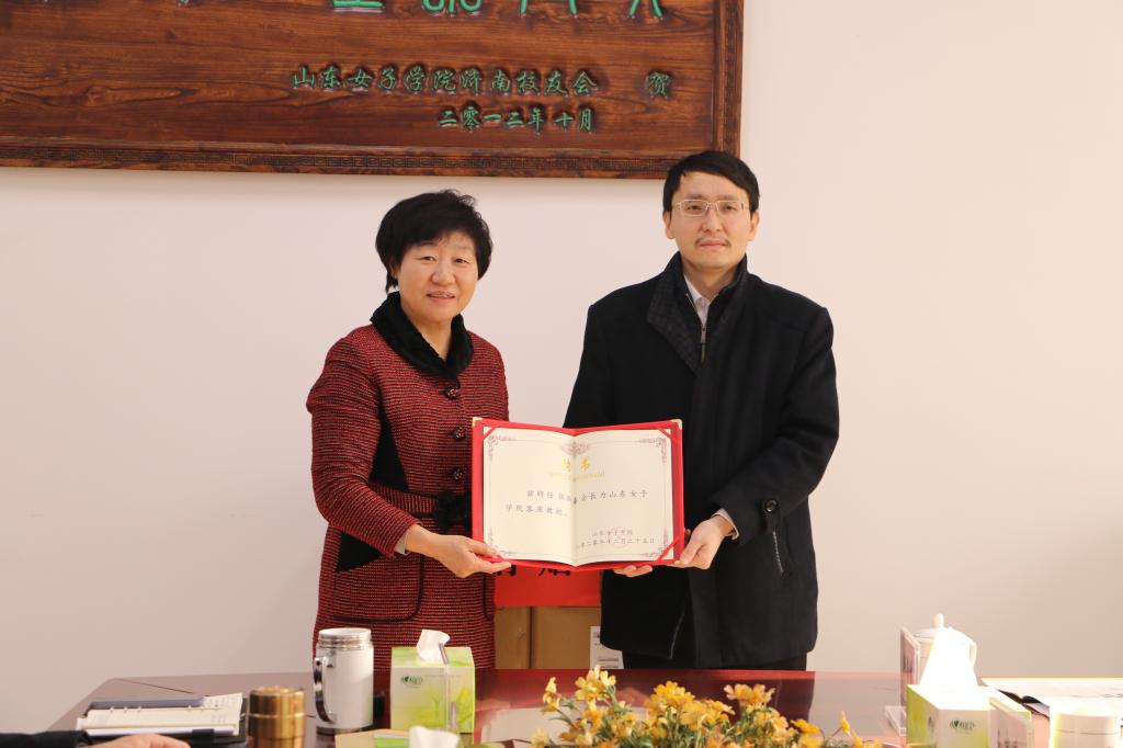 2021年1月13日,济南市儒商公益促进会会长、山东儒商企业集团董事长张洪嘉一行来校参加校企合作交流会议,学校党委书记郭翠芬、科技产业处处长刘明、经济学院书记齐振花、院长沈传河、创新创业学院院长李厚忠出席仪式。