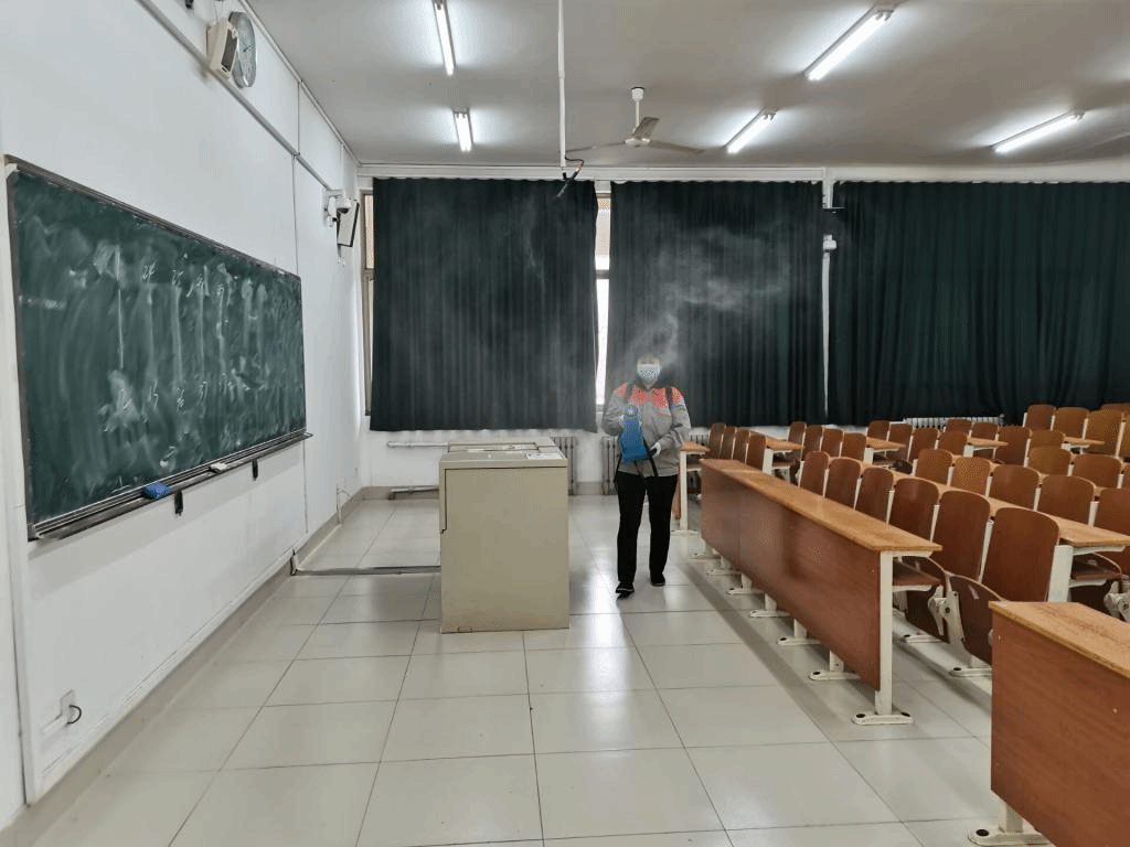 山东圣翔节能科技有限公司和山东中家集团分别向学校捐赠疫情防控消杀物资,并组织专业人员对学校教学、办公、公寓等内部公共区域进行全面消杀,为新学期迎接学生分批错峰返校创造安全卫生的学习、生活环境。