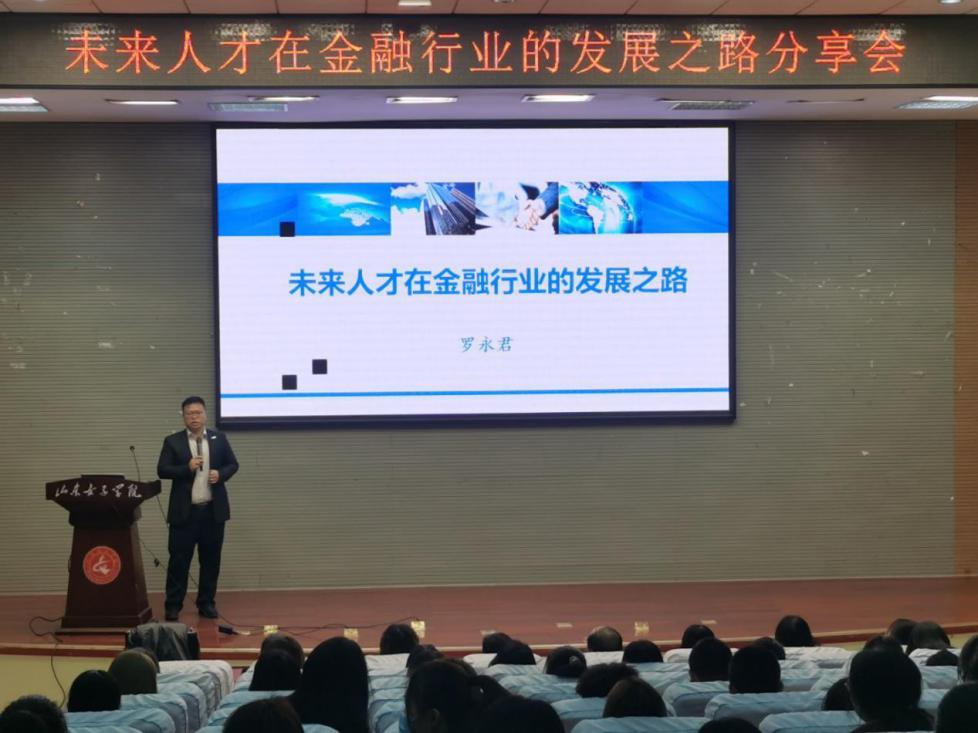 罗永军先生首先就中国金融业发展及金融行业基本情况进行了介绍,然后根据经济学院专业设置特点,重点对商业银行、保险、证券公司的组织架构和聘任申报条件进行了详细解读,为同学们如何进入金融机构以及如何规划个人职业生涯带来了个人感悟及体会,同时就本科阶段可以考取的资质证书进行了详细介绍。
