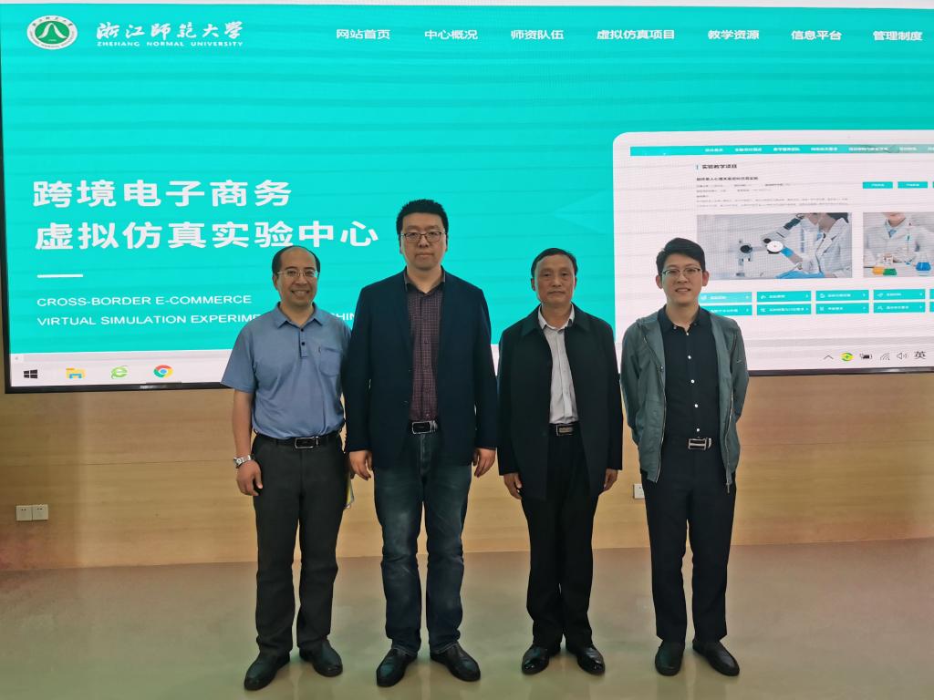4月25日,经济学院院长沈传河、副院长冯亮、国际经济与贸易教研室主任孙海洋、专业教师张太乐一行到浙江师范大学经济与管理学院进行考察与调研。此次调研是为了学习和借鉴浙江师范大学跨境电商人才培养体系数字化转型及虚拟实验仿真实验室建设等方面的成熟体制和宝贵经验,并重点参观学习了国家级虚拟仿真实验教学中心--浙江师范大学跨境电子商务虚拟仿真实验教学中心。浙江师范大学经济与管理学院院长助理邹益民教授热情接待了我院教师一行,并全程陪同讲解。