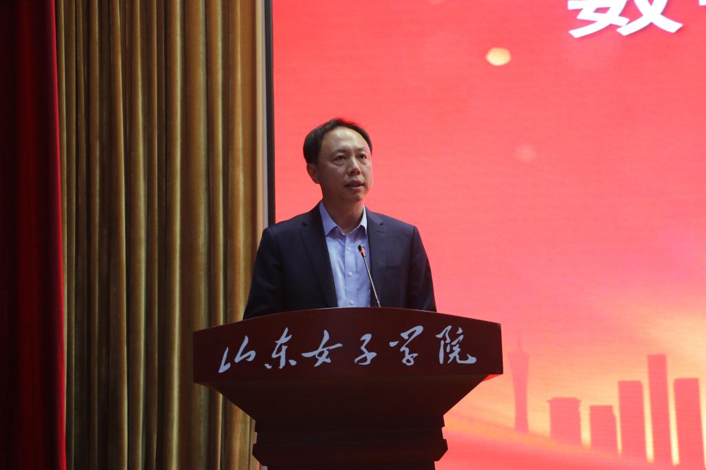 首先,学校党委副书记、校长盛国军致欢迎辞,向山东省国欣文化旅游发展集团给予的关心与支持表示感谢。他表示,山东女子学院与山东文旅投资集团共建的数字经济与文旅产业学院,是贯彻落实全省新旧动能转换重大工程的重要举措。未来,双方将协同共进,本着产学研结合、服务山东经济、资源共享、共同发展、互相促进的原则,充分发挥双方自身优势,打破学科专业壁垒,打造应用性交叉学科专业,构建贴近新兴产业、契合行业标准、突破专业界限、产学研深度融合的数字金融、数字贸易、数字文旅等领域的应用型人才培养共同体。