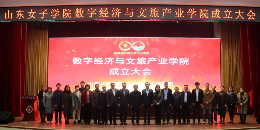 2021年11月17日,学校与山东文旅投资集团共建“数字经济与文旅产业学院”成立大会在学校第二报告厅举行。山东省国欣文化旅游发展集团有限公司党委副书记、总经理丁艺,山东文旅投资集团有限公司党委书记、董事长王化龙,山东文旅集团创业投资有限公司董事长、山东华仁教育发展有限公司董事长贾景梅,山东华仁教育发展有限公司总经理张俊建,学校党委副书记、校长盛国军,学校副校长刘恩允,以及学校教务处处长穆勇、招就处处长任晓剑、科研处处长刘进军,经济学院院长沈传河、旅游学院党委书记吕建国等学院领导和师生代表出席会议。