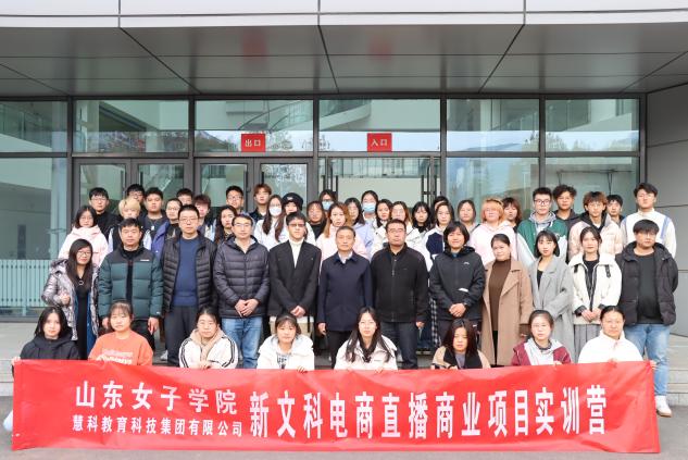 2021年11月15日上午,经济学院于求真楼515举行了新文科电商直播商业项目训练营开营仪式。北京学霸未来文化产业集团CEO王西民,慧科集团山东产业学院院长邱雪梅、新文科学院项目负责人王海超、资深讲师潘信君、仇博源,学校招生就业处处长任晓剑、教务处副处长吕慎敏,经济学院党总支书记齐振花、院长沈传河、副院长田玉丽和冯亮以及关务教研室主任张欣欣和20级报关专业全体学生参加了开营仪式。仪式由我院优秀毕业生张慧敏主持。