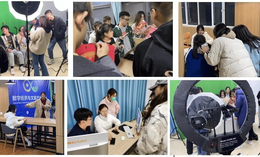 “新文科电商直播商业项目实训营”主要涵盖抖音电商、短视频制作、直播流程、实战演练、项目复盘和结营答辩等环节,是一个系统化进行短视频和电商直播培训的实训实战项目。在EMO(运营体验管理师)张言肖老师的引领带动下,将参加训练营的学生分成了6个团队,并通过竞选队长、确定队名队呼等活动,进一步增强了团队凝聚力。之后,全体同学共同动手搭建直播间,成功掌握了直播间的搭建方法;然后各团队讨论了短视频创作和直播制作的具体流程和细节,并进行了直播演练、直播实战。通过全程参与,同学们加深了对“互联网+”的理解,收获了新文科电商直播的专业知识和技能,提升了自身的实战能力,对于学校和学院培养应用型人才具有积极意义。