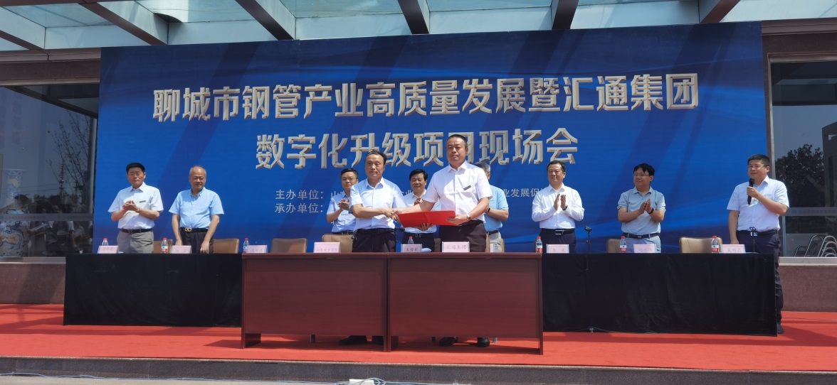6月8日-9日,经济学院院长沈传河带领数字经济服务地方团队一行前往聊城高新区和临清市开展数字经济与乡村振兴社会服务系列活动。6月8日上午,团队一行人参加在山东汇通集团公司举办的、由山东省轻工集体企业联社(山东省中小企业发展促进中心)主办、聊城市工业和信息化局和聊城经济技术开发区管委会承办的聊城市钢管产业高质量发展暨聊城汇通集团数字化升级项目现场会。山东省轻工集体企业联社党组书记、理事会主任王哲军,聊城市工信局党组书记、局长解志超,聊城市工信局党组成员、副局长吴明启,聊城经济技术开发区党工委副书记、管委会副主任李光,以及中国钢结构协会钢管分会、复旦大学、齐鲁工业大学、山东省中小企业协会等相关领导参加了活动。会上,山东女子学院经济学院与山东汇通集团签订了数字化服务合作协议,启动了汇通集团数字化升级项目。经济学院院长沈传河致辞,并发表了讲话,表示学校将致力于地方数字化改造升级工程,促进地方经济社会高质量发展。