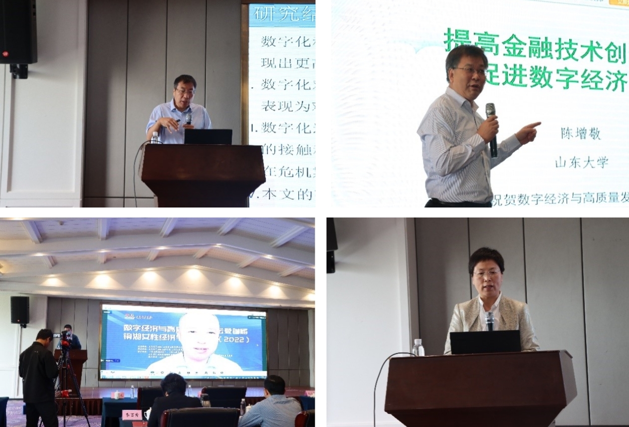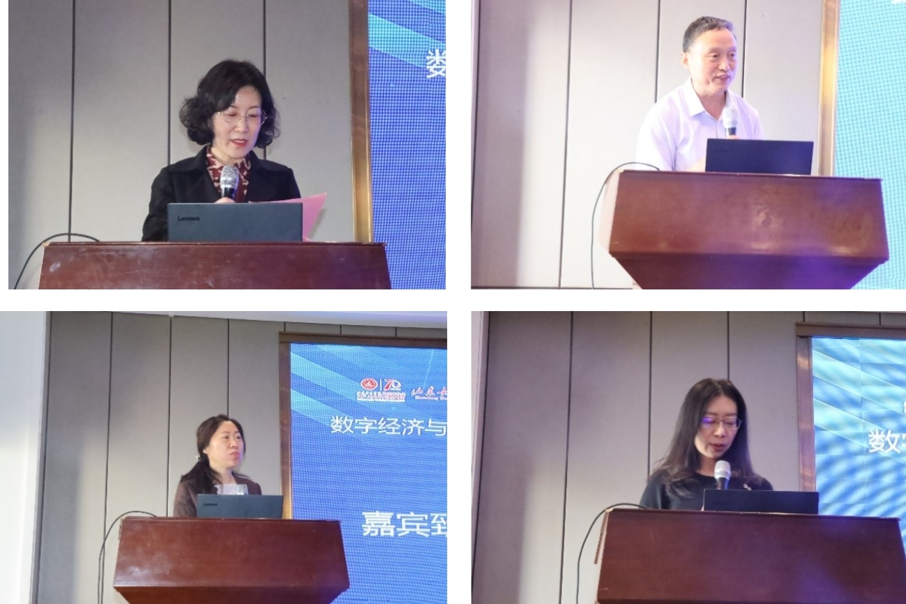 研讨会的主旨报告环节,北京师范大学经济与工商管理学院金融系主任、教育部金融学类专业教学指导委员会委员胡海峰先生,国家杰出青年科学基金获得者、教育部“长江学者”特聘教授、山东大学中泰证券金融研究院院长陈增敬先生、浙江大学中国数字贸易研究院院长,求是特聘教授、博士生导师,浙江大学理论经济学数字经济理论与产业升级学科方向负责人马述忠先生,中国劳动和社会保障科学研究院二级研究员,全国妇联妇女发展部兼职副部长张丽宾女士,分别围绕数字化转型与企业韧性、金融技术创新与数字经济、数字贸易视域下的消费者、数字经济与妇女就业创业等作了主旨发言。厦门大学教授叶文振,山东大学教授、山东省大数据研究会会长石玉峰,山东财经大学教授、山东省跨境电商研究会会长王培志,山东大学教授曲创,山东交通学院经管学院院长耿中元教授、副院长孙烨教授,齐鲁工业大学经管学部主任李晔教授,山东农业工程学院经管学院院长李百秀教授,鼎力教育集团副总经理朱倩,山东女子学院人事处长李缨、科研处长董吉贺等也一同出席了开幕式和主题报告环节。